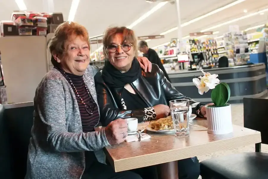 Zwischen den Nutzern und freiwilligen Mitarbeitern der Offenen Hilfen der Lebenshilfe Schweinfurt entstehen manchmal Freundschaften fürs Leben: (v. l.) Elisabeth Pfennig und Ingrid Lauer verbindet nach 25 Jahren eine tiefe Vertrautheit. Die strahlenden Gesichter der beiden sprechen für sich.
