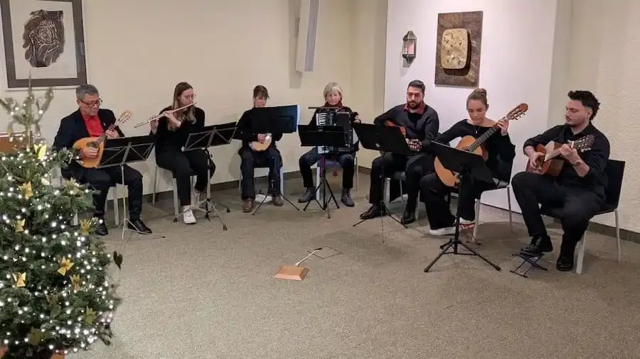 Für die musikalische Gestaltung sorgte erneut die „Grupo Catatumbo“ der Musikschule Schweinfurt. Unter der Leitung von José Zambrano präsentierten die Musikerinnen und Musiker – Sophie Schima, Sophie Landgraf, Anja Dittmar, Amir Hadighehban, Hannah Meißner und Richard Gross – ein abwechslungsreiches Programm aus klassischen Weihnachtsliedern und instrumentalen Stücken. Das Publikum wurde dabei immer wieder zum Mitsingen eingeladen.