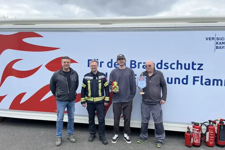 Von Montag bis Mittwoch (30. März bis 1. April 2026) machte das Infomobil „Richtig Feuer löschen“ vor Ort Station. Rund 230 Mitarbeitende mit und ohne Behinderung nahmen an der dreitägigen Schulung teil, die Theorie und Praxis miteinander verband.