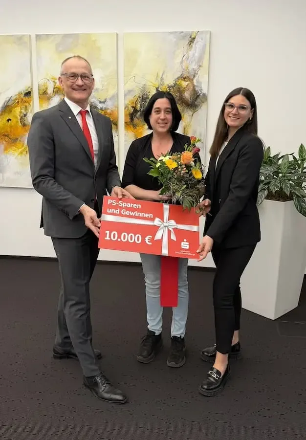 Der symbolische Gewinnscheck wurde vor Ort überreicht. Vorstandsmitglied Andreas Linder ließ es sich nicht nehmen, persönlich zu gratulieren. Solche Momente seien besondere Highlights im Arbeitsalltag, betonte er. Auch Kundenberaterin Larissa Klauer, die die Gewinnerin betreut, zeigte sich erfreut über den Gewinn.