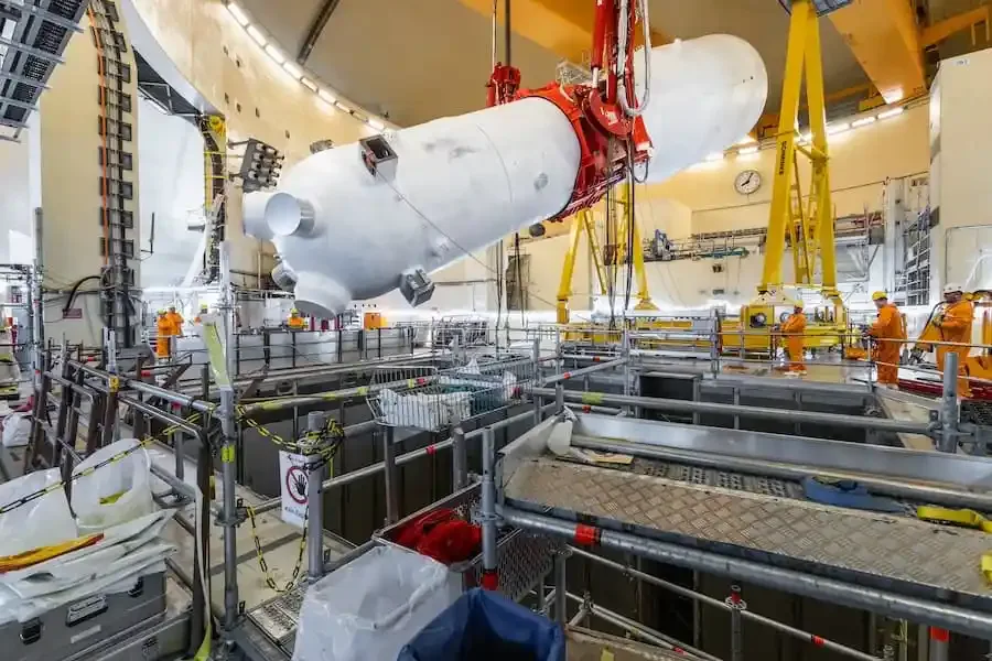 Die Vorbereitungen für dieses Großprojekt im Kernkraftwerk Grafenrheinfeld laufen bereits seit dem Jahr 2021. Für den Ausbau der riesigen Bauteile waren umfangreiche bauliche Veränderungen im und am Reaktorgebäude notwendig.