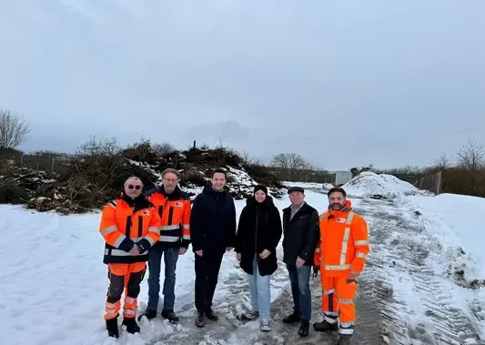 Ortstermin an der Grünschnittdeponie in Gochsheim mit Bürgermeister Manuel Kneuer und Vertretern von Bauhof und Gemeinde.