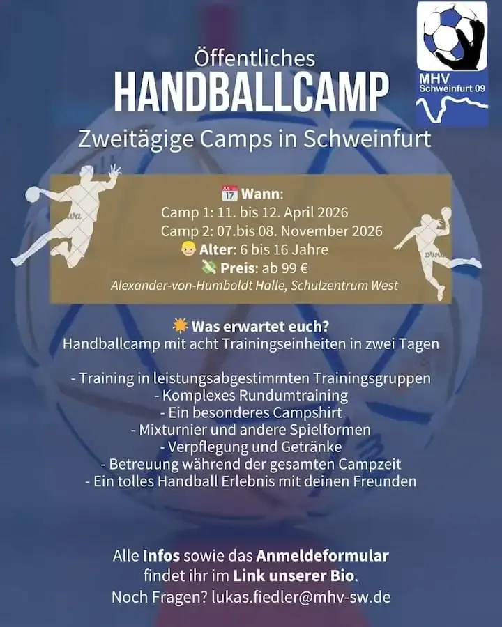 Gute Nachrichten für handballbegeisterte Kinder und Jugendliche: Die beliebten öffentlichen Ballkids Handballcamps finden auch im Jahr 2026 wieder in Schweinfurt statt. Die Anmeldung ist ab sofort möglich.