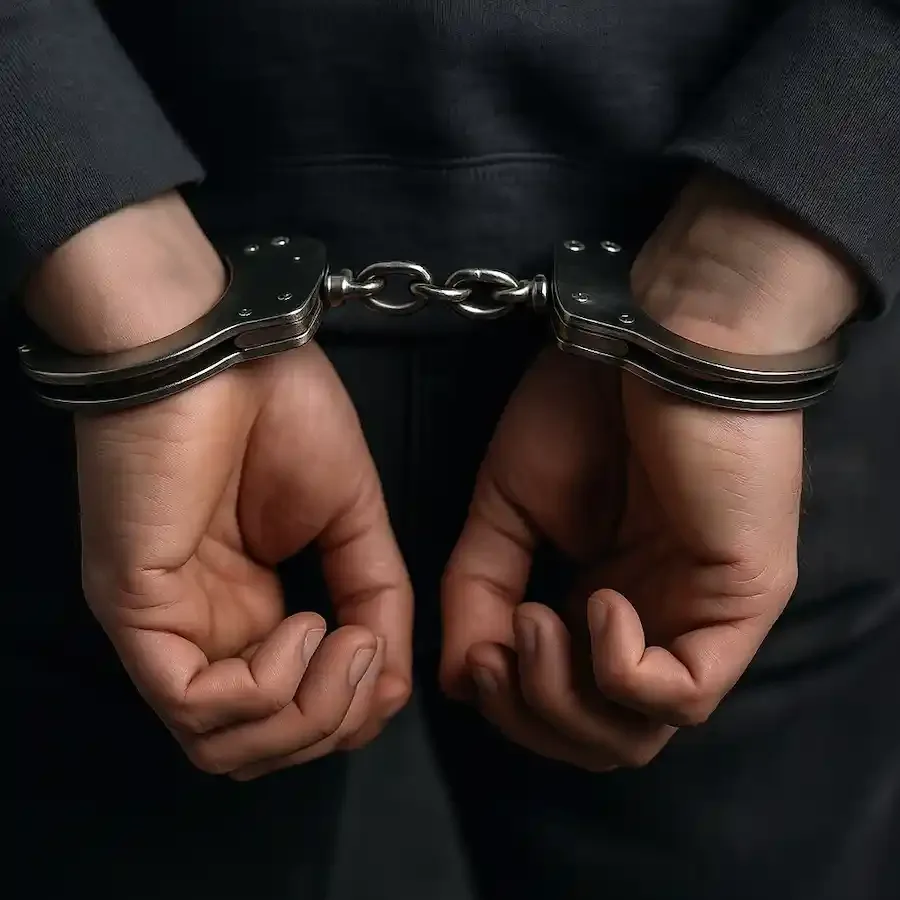 Zwei Hände in Handschellen – Festnahme eines Tatverdächtigen durch die Polizei
