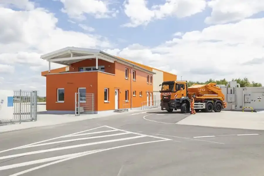 Am Eingang des Wertstoffhofs werden Besucher künftig von einem Mitarbeiter empfangen, der die angelieferten Materialien prüft und gegebenenfalls Gebühren kassiert. Die ebenerdig aufgestellten Container sowie eine überdachte Laderampe ermöglichen ein bequemes und sicheres Abladen.
