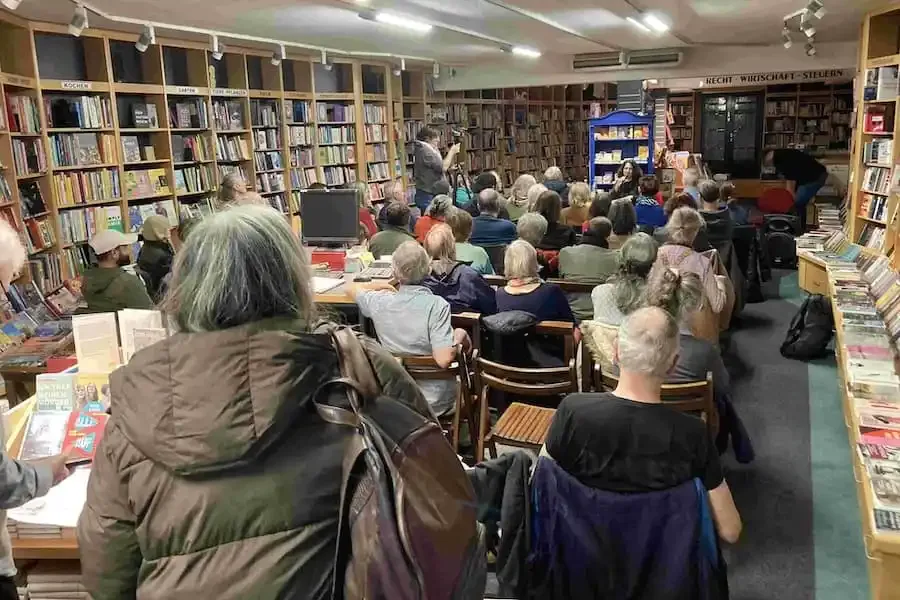 Der Abend im Buchladen Neuer Weg bot den Gästen eine intensive Auseinandersetzung mit den Inhalten des Romans und regte zu einer lebhaften Diskussion über die Darstellung der unterschiedlichen Perspektiven an.