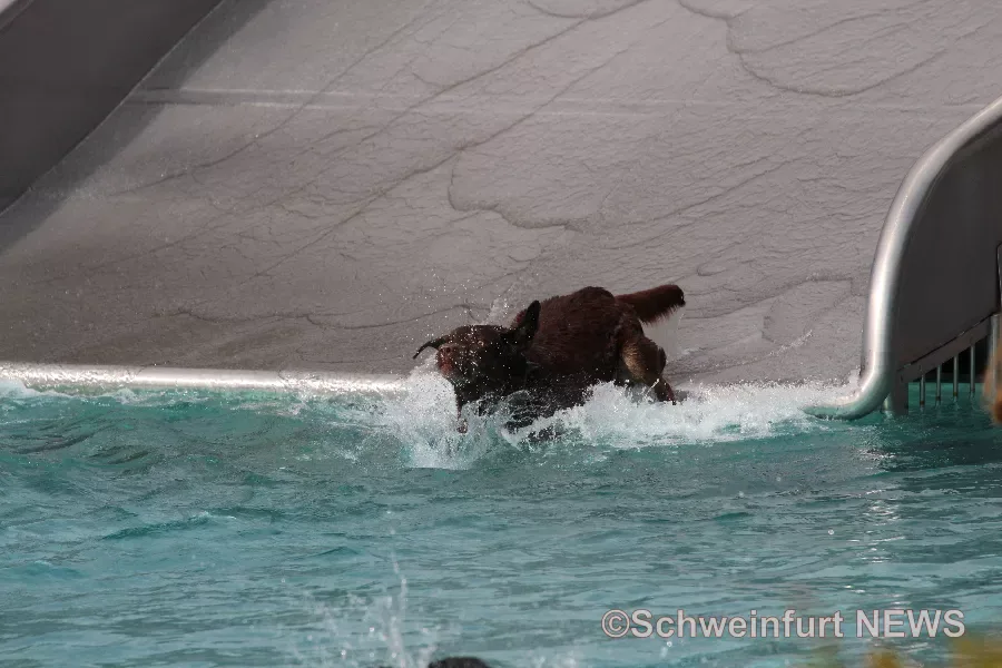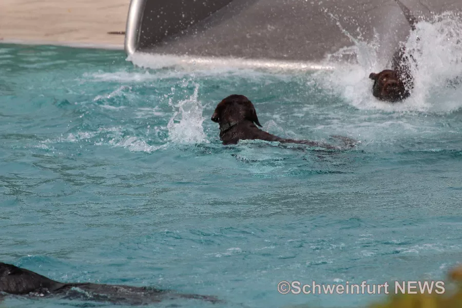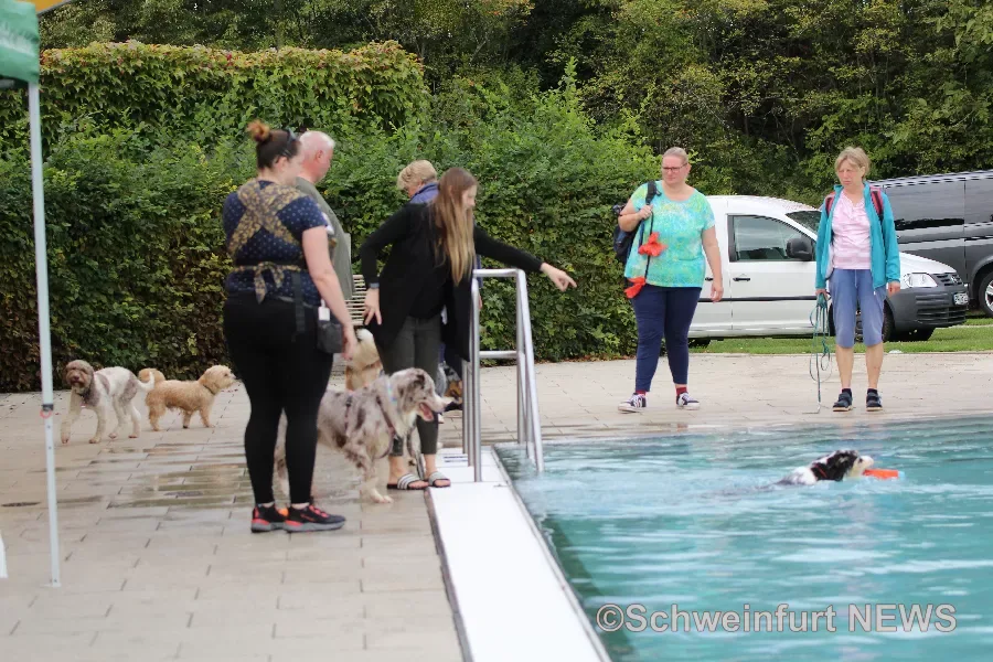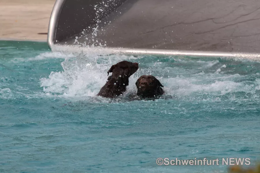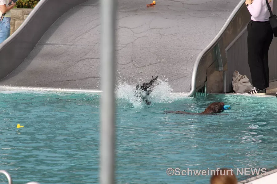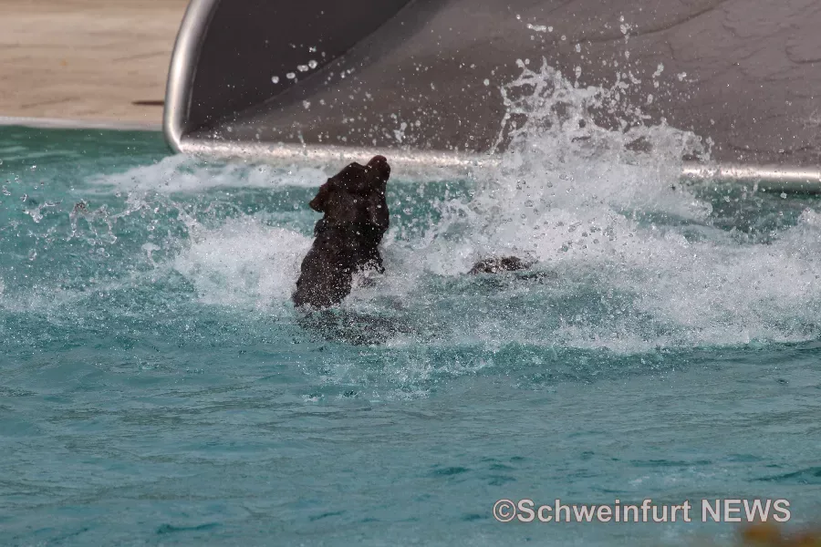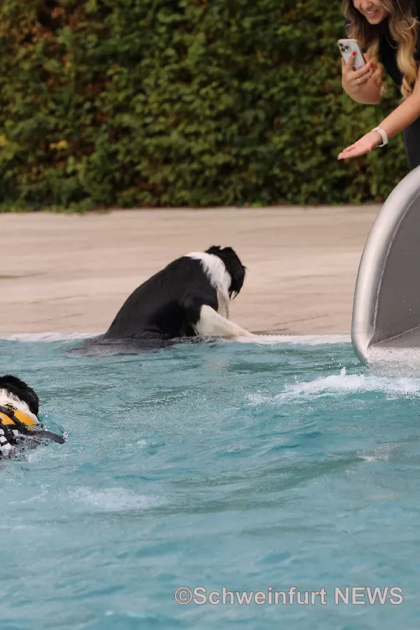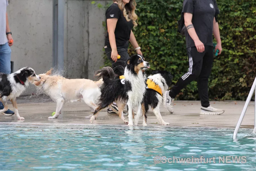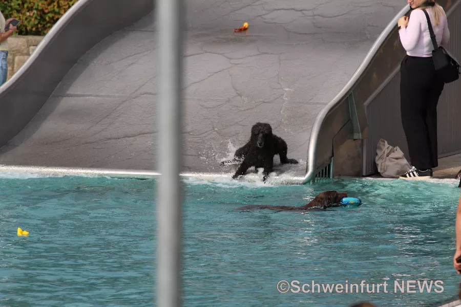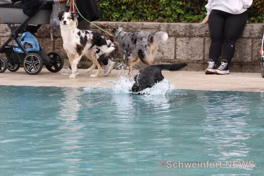 Einmal im Jahr gehört das Schweinfurter Sylvana ganz den Vierbeinern: Beim beliebten „Dog Day“ am Sonntag tummelten sich zahlreiche Hunde mit ihren Besitzerinnen und Besitzern im Freibad. Bevor die Becken in die Winterpause gehen, durften die Fellnasen nach Herzenslust ins Wasser springen, planschen und miteinander toben.