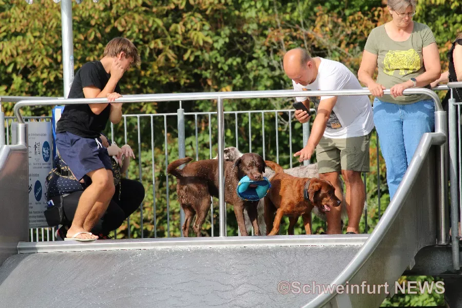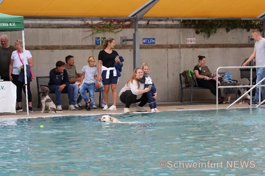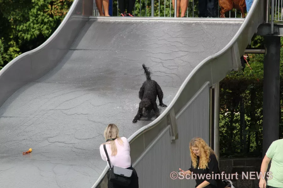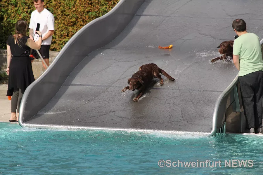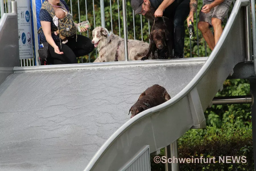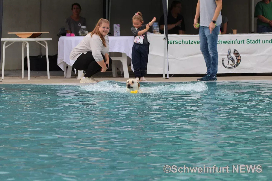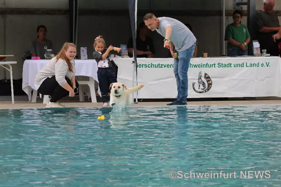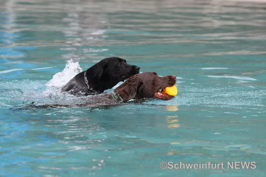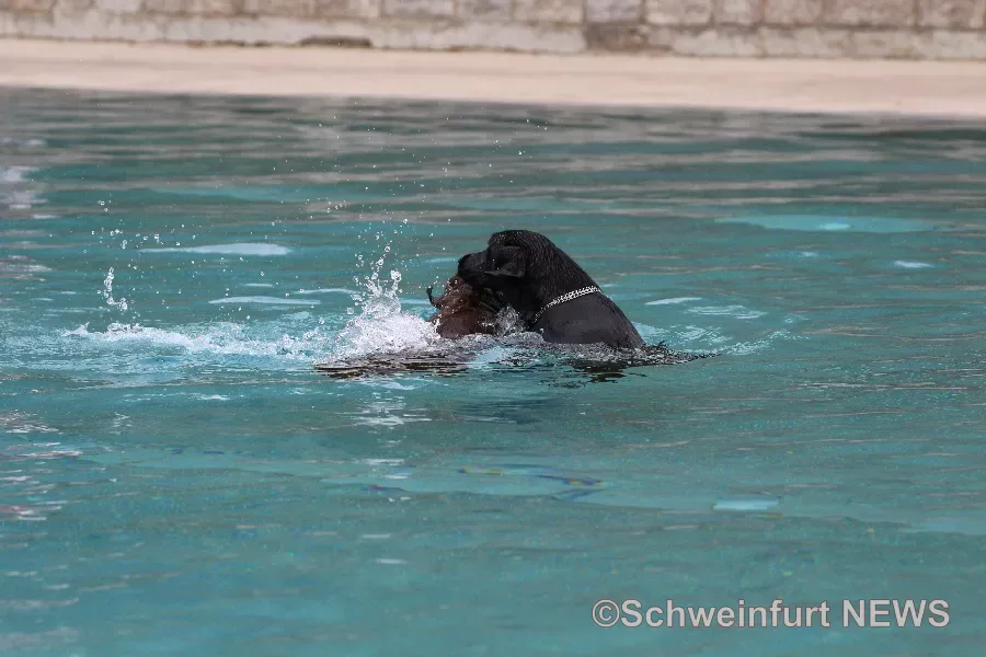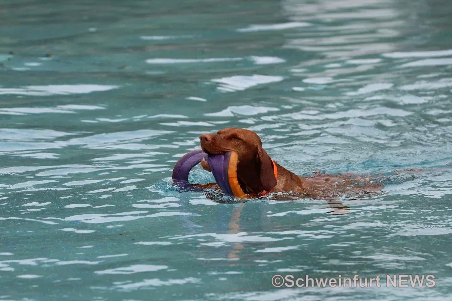 Einmal im Jahr gehört das Schweinfurter Sylvana ganz den Vierbeinern: Beim beliebten „Dog Day“ am Sonntag tummelten sich zahlreiche Hunde mit ihren Besitzerinnen und Besitzern im Freibad. Bevor die Becken in die Winterpause gehen, durften die Fellnasen nach Herzenslust ins Wasser springen, planschen und miteinander toben.