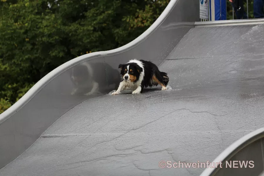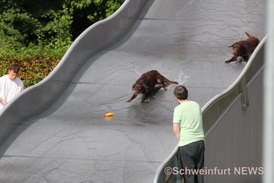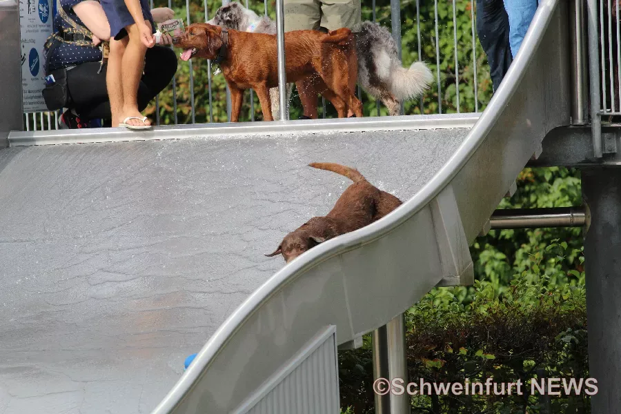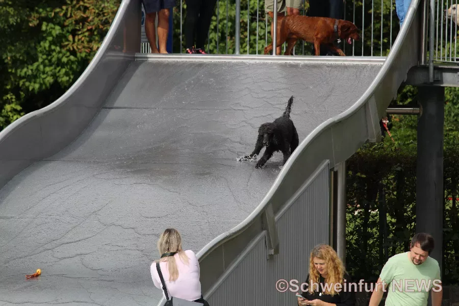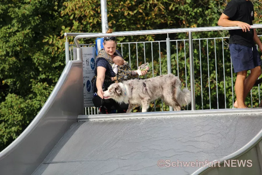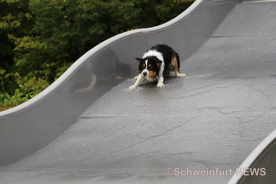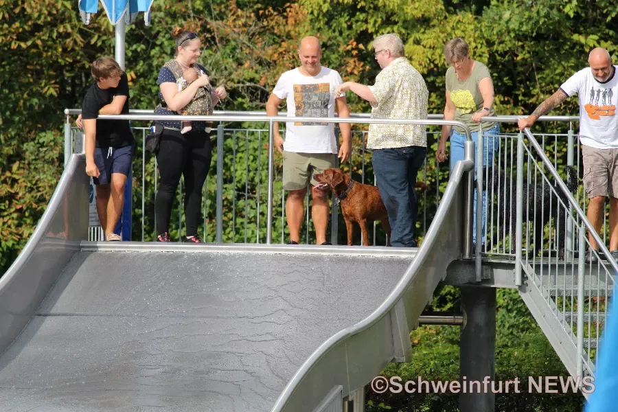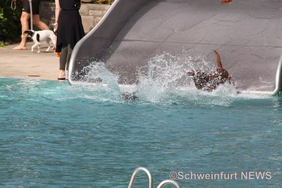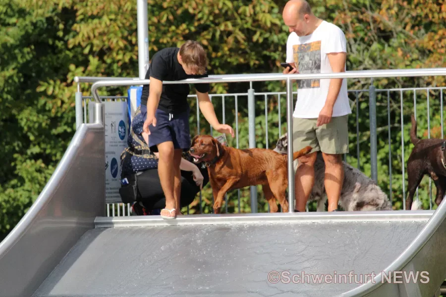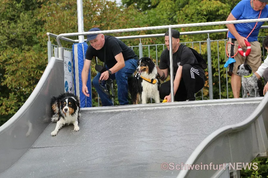 Einmal im Jahr gehört das Schweinfurter Sylvana ganz den Vierbeinern: Beim beliebten „Dog Day“ am Sonntag tummelten sich zahlreiche Hunde mit ihren Besitzerinnen und Besitzern im Freibad. Bevor die Becken in die Winterpause gehen, durften die Fellnasen nach Herzenslust ins Wasser springen, planschen und miteinander toben.