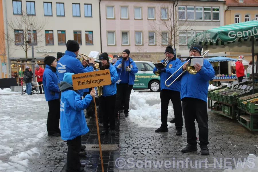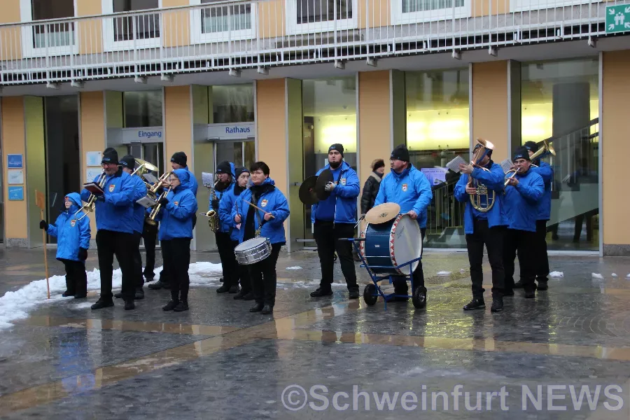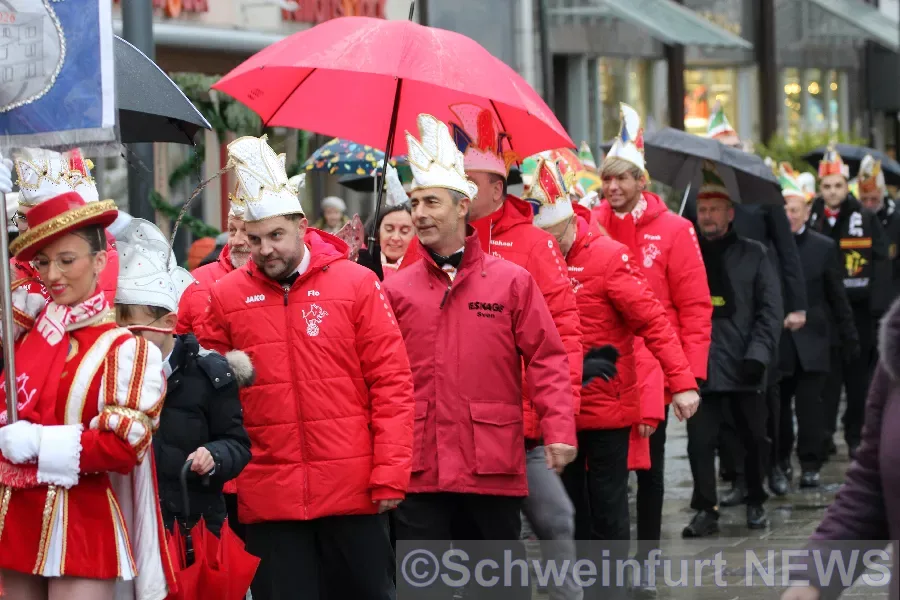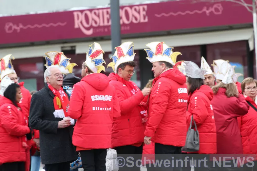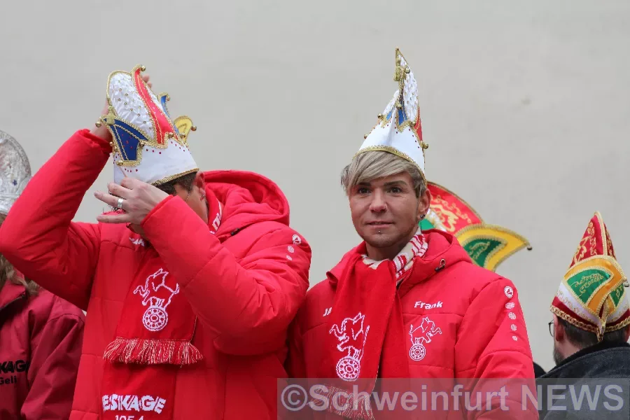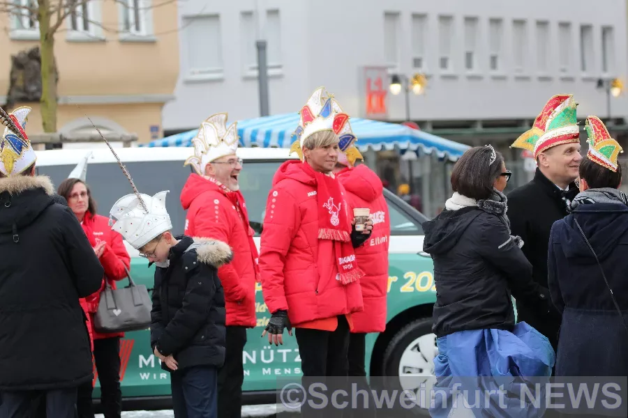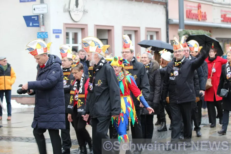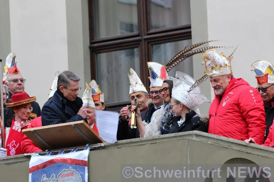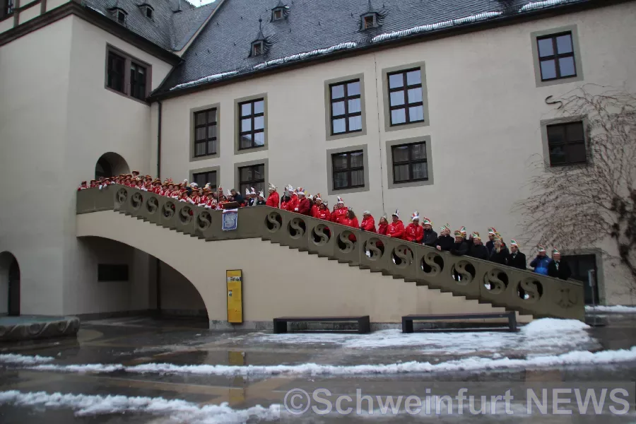 Beteiligt waren die Erste Schweinfurter Karnevalsgesellschaft, die Schwarze Elf Schweinfurt sowie die Antöner Schweinfurt. Gemeinsam zogen sie mit Prinzenpaaren, Garden, Elferräten und Musik zum Rathaus, wo Oberbürgermeister Sebastian Remelé die närrische Abordnung erwartete.