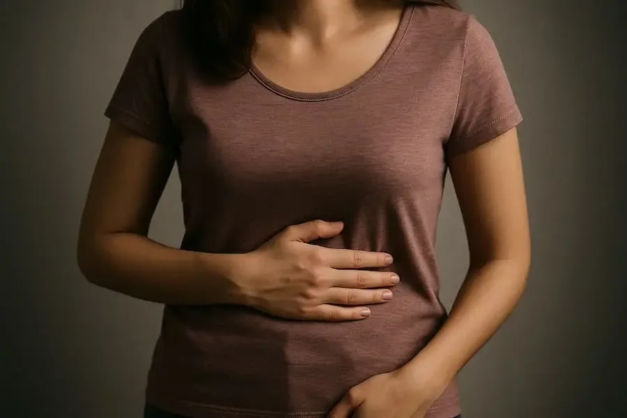 Symbolbild zum Thema Endometriose – Frau legt Hand auf den Unterbauch, Veranstaltung im KuK-Filmtheater Schweinfurt.
