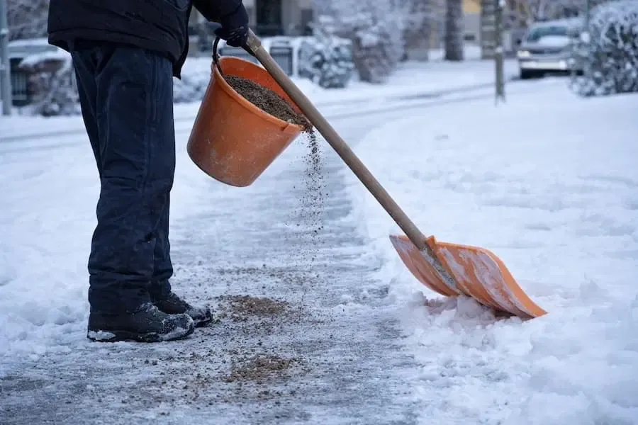 Die Verwendung von Tausalz und ätzenden Mitteln ist grundsätzlich unzulässig. Nur in Ausnahmefällen – etwa bei Blitzeis, Eisregen, an Treppenanlagen oder bei starken Steigungen – darf Salz eingesetzt werden, wenn die Glätte nicht anders beseitigt werden kann.