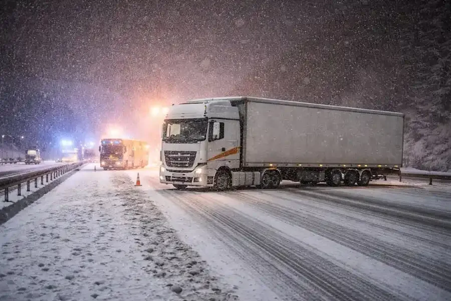 Ein querstehender Sattelzug blockiert in der Nacht bei starkem Schneefall die A45 bei Alzenau und sorgt für eine mehrstündige Vollsperrung. Symbolfoto