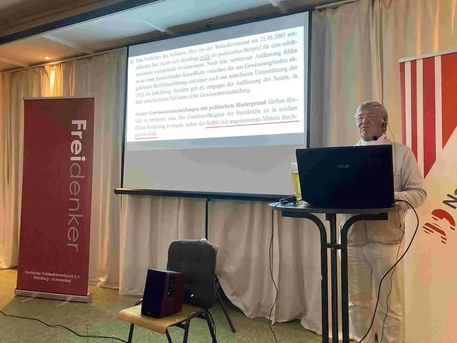 In Schweinfurt hat sich eine Veranstaltung mit sicherheitspolitischen Fragen rund um Aufrüstung, Militarisierung und eine mögliche Wiedereinführung der Wehrpflicht beschäftigt. Rund 35 Zuhörer verfolgten am Samstagabend den Vortrag von Bundeswehrmajor a. D. Florian D. Pfaff in der Gaststätte „TV Oberndorf“.