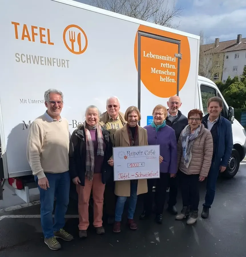 Doppelte Nachhaltigkeit für den guten Zweck: Das Team der Schweinfurter Repair Cafés hat eine Spende in Höhe von 1.000 Euro an die Tafel Schweinfurt e. V. übergeben. Der Betrag stammt aus den Spendenerlösen der vergangenen Veranstaltungen im Kilianszentrum.
