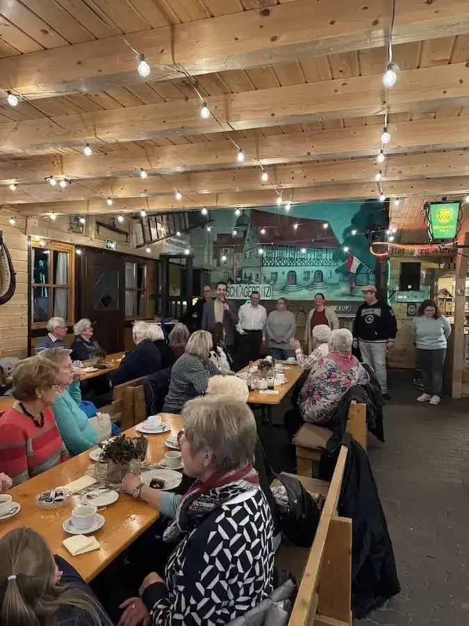 Zum Abschluss führte die Fahrt zum Hetzberg. Dort wurden die Seniorinnen und Senioren von den Kandidatinnen und Kandidaten für den Gemeinderat empfangen. Bei Kaffee und Kuchen bot sich Gelegenheit zum persönlichen Austausch und für Gespräche über die gewonnenen Eindrücke.