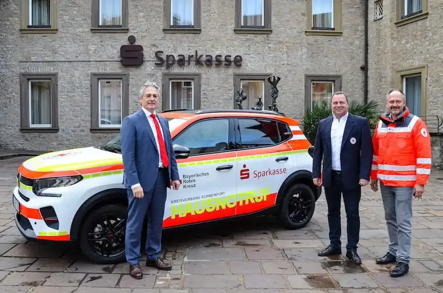 Sparkasse fördert neues Hausnotruf-Fahrzeug für das BRK Schweinfurt