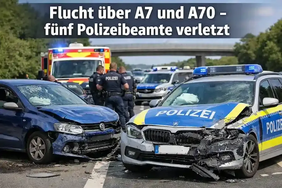 Spektakuläre Flucht über A7 und A70 – gestohlener VW Polo gestoppt, fünf Polizisten verletzt