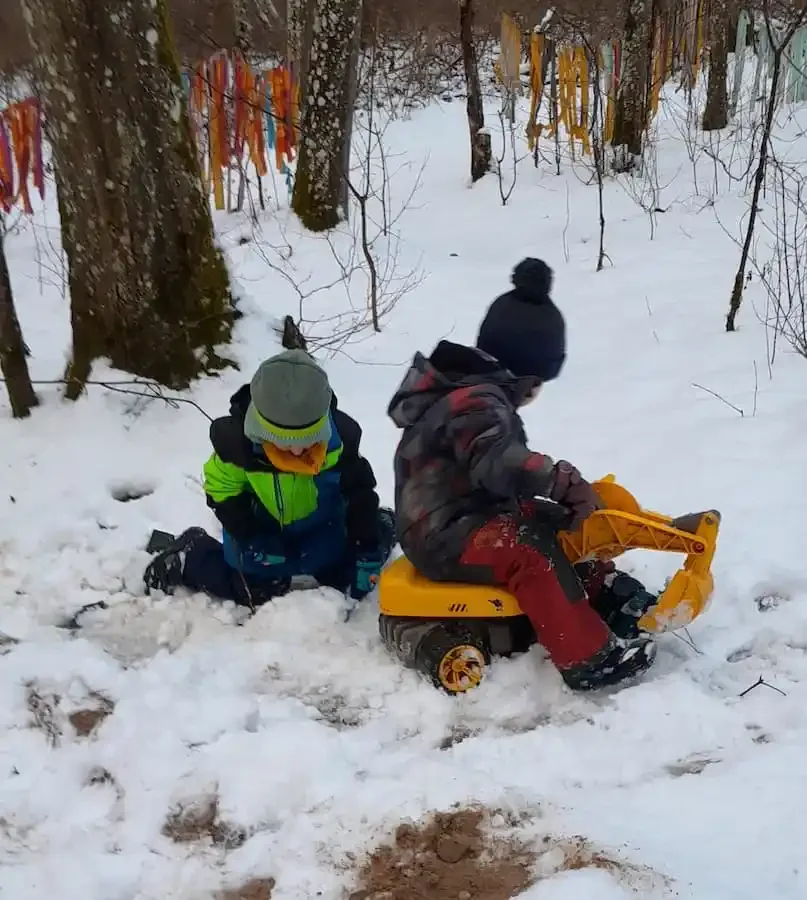 Ein weiterer Lerneffekt zeigte sich beim Bau von Schneemännern. An mehreren Tagen rollten die Kinder Schneekugeln und stellten fest, dass sich der Schnee zunächst nicht formen ließ. Erst als er ausreichend feucht war, konnten stabile Kugeln entstehen. So erfuhren die Kinder spielerisch, dass Schnee unterschiedliche Eigenschaften haben kann und bestimmte Voraussetzungen benötigt, um formbar zu sein.