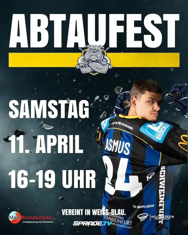 Die Mighty Dogs Schweinfurt laden ihre Fans zum traditionellen Saisonabschluss – dem sogenannten Abtaufest – in den Icedome ein. Die Veranstaltung findet am Samstag, 11. April 2026, ab 16 Uhr im Außenbereich des Icedome statt.